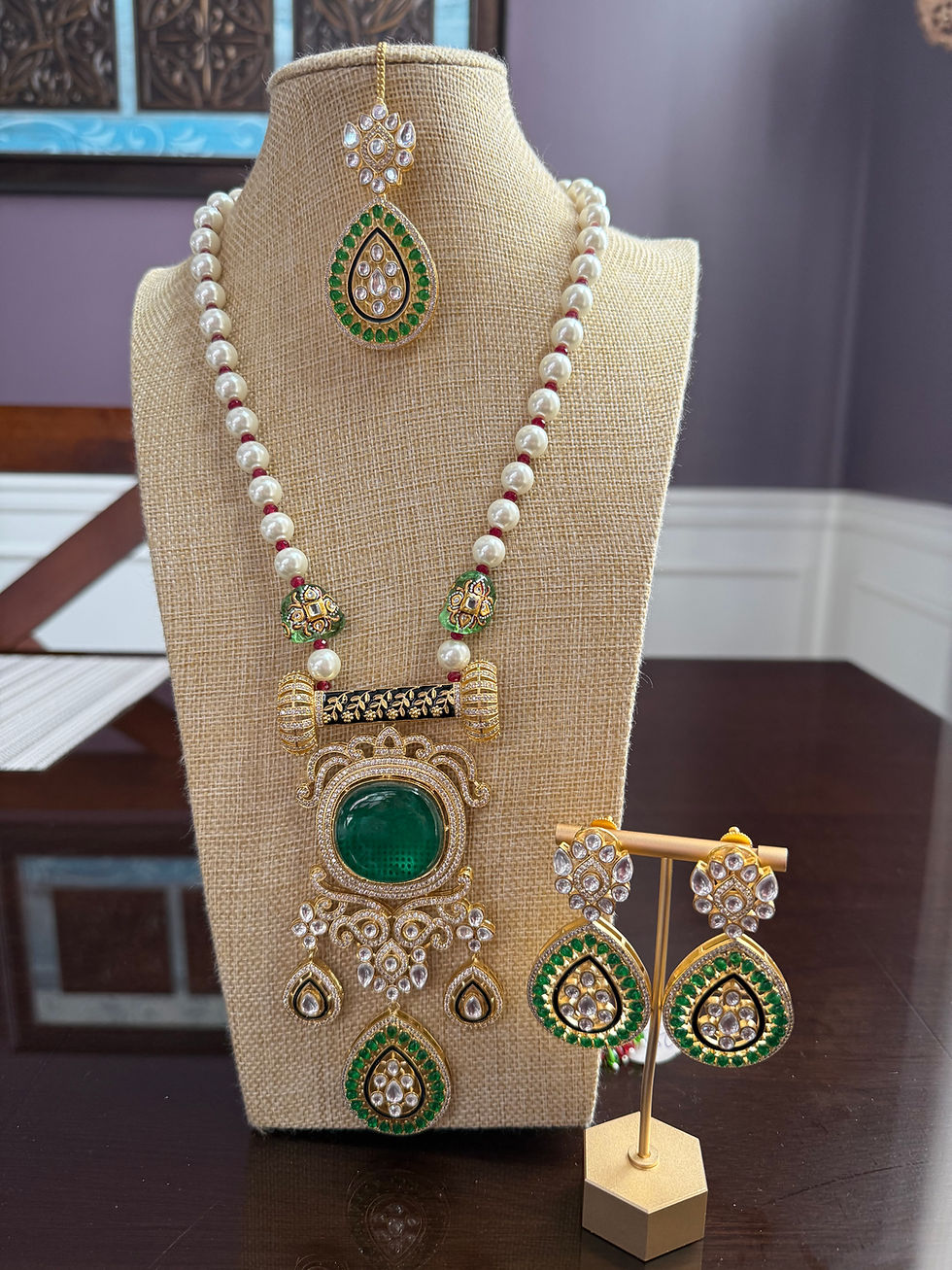 Long pearl Minakari and stone work Necklace Set with tikka !