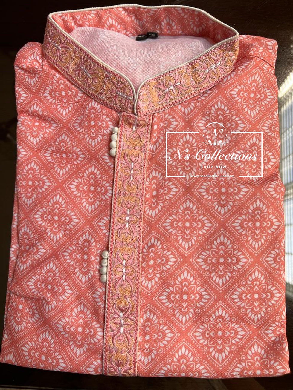 Traditional Wear Peach Thread Work Cotton Kurta Pajama! Size 42